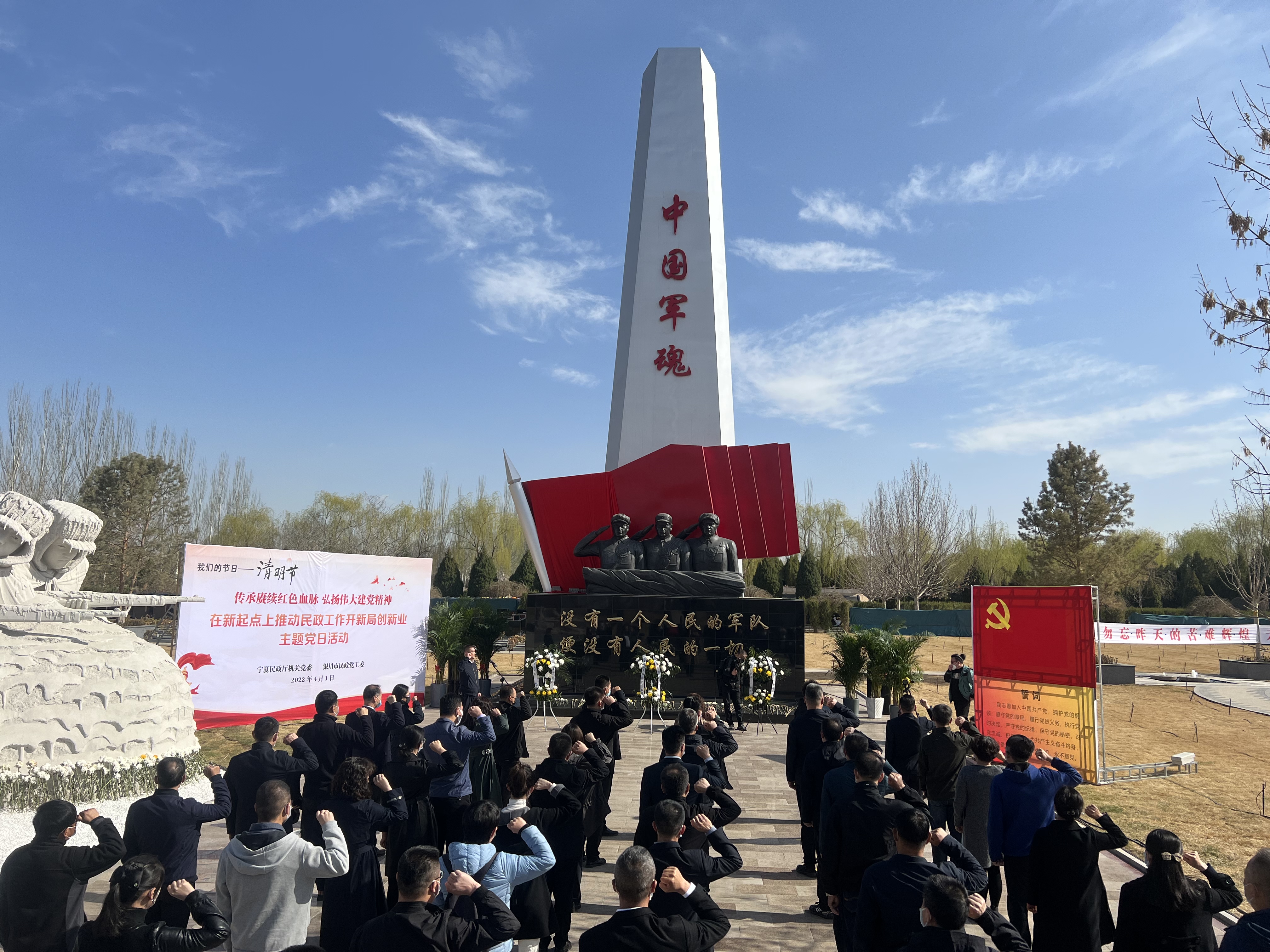 为了深切缅怀革命先烈丰功伟绩,不断从党史、从革命先烈事迹中汲取力量、启迪智慧,激励全体党员大力弘扬伟大建党精神,在新起点上推动民政工作开新局创新业,银川市民政党工委与自治区民政厅机关党委联合,于2022年4月1日在银川松鹤陵园军魂园开展“传承赓续红色血脉 弘扬伟大建党精神 在新起点上推动民政工作开新局创新业”主题党日活动。自治区民政厅机关党委办公室、人事与老干部处、政策法规处、儿童福利和社会事务处党支部党员和腾博会(中国)官方网站 机关支部及局属基层党支部党员参加了活动。