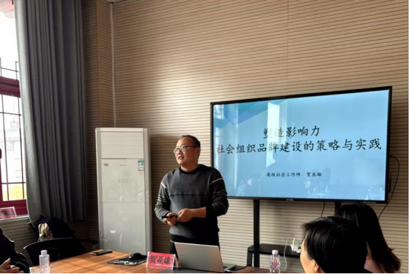 次日课程转向社工专业技能与项目影响力提升,有  2 大实务主题:彭贤清老师讲 “小组工作方法与实务技巧”,拆解小组工作全流程,通过案例模拟指导掌握关键技能;贺亚雄老师讲 “社会服务项目总结与品牌传播”,讲授新闻稿撰写与新媒体传播策略,帮助打造专业且具有传播力的服务品牌。