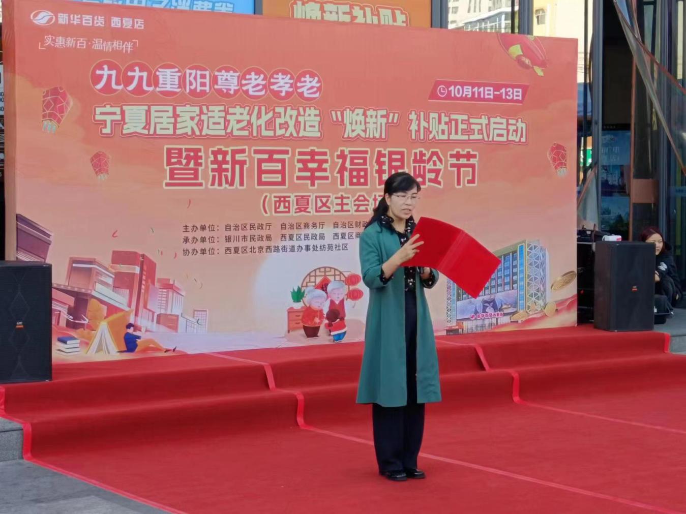 九九重阳节,浓浓敬老情。为进一步弘扬尊老、敬老、爱老的传统美德,营造养老、孝老、助老的良好氛围,同时大力宣传宁夏居家适老化“焕新”工作,10月11日,由西夏区民政局联合西夏区商投局、北京西路街道、新华百货西夏店等共同举办的宁夏适老化“焕新”补贴活动主场暨新百幸福“银龄”节在西夏区新华百货西夏店拉开序幕。