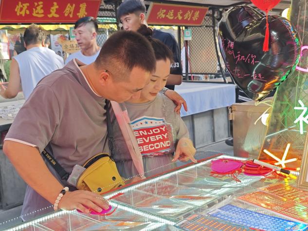 来到怀远夜市福彩站点前,彩灯初上,人头攒动,福彩小车上挂满了爱心许愿牌,走近一看,全是来往彩民分享的有关“爱”的故事。怀远站点福彩员工穿着中心统一定制的工作服,一边笑着欢迎来往留言的彩民,一边感叹:“这次七夕活动邀请彩民分享有关爱的故事,有写爱情的、助人为乐的、亲情友情的,就算没有留言,来往的路人看到也觉得心里暖暖的,真的是意义非凡!”也有路过的彩民说:“在朋友圈看到银川市福彩发送的有关七夕节活动的推文,七夕这天和男朋友特意来参加一下。”这次中心将传统节日的温馨氛围与福彩的公益使命紧密结合,“夜市+福彩刮刮乐”跨界联动为七夕约会创造新“彩头”,编织了一幅幅爱情与公益交织的美丽画卷。